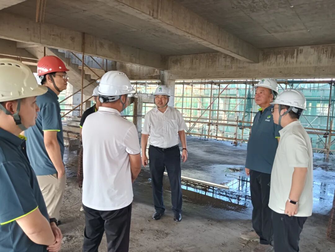 肖建庄教授首先参观了百色建宏的办公楼项目建设现场。办公楼项目的主体结构使用了肖建庄教授提出的再生骨料混凝土技术进行施工,肖建庄教授现场视察后称赞了再生骨料混凝土的施工质量,并希望建宏公司在剩余的项目中继续扩大再生骨料混凝土的应用示范,为推广建筑垃圾资源化利用贡献力量。